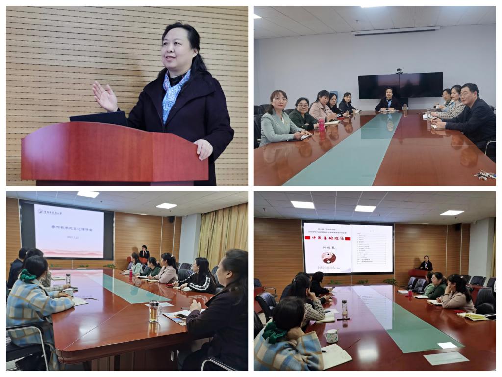 2021年3月23日下午,河南省高等学校教学名师崔姗姗工作室第一期教学研讨活动在基础医学院会议室成功举行。本次研讨以“如何做好教学大奖赛准备工作”为主题,由名师工作室负责人、中医基础理论教研室主任、河南省高等学校教学名师崔姗姗教授主持,基础医学院副院长曹珊教授及中基教研室、内经教研室、中诊教研室、方剂教研室等教师参加了本次研讨活动。
