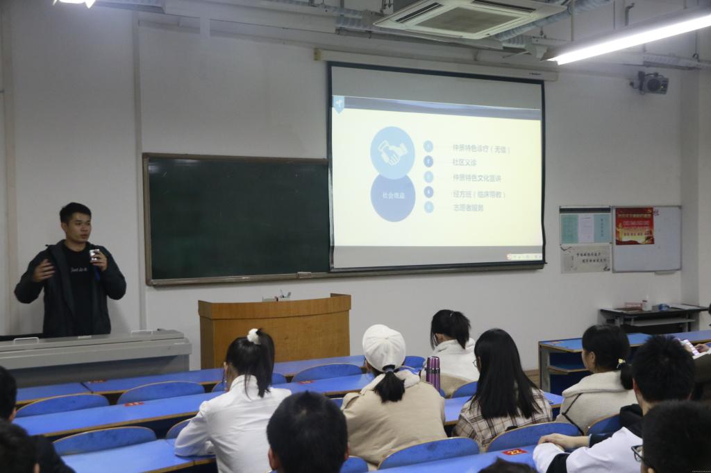 交流会上,孙宁宁学长向同学们讲述了他所创立大发本草中医文化传承基地的初心和历程,重点强调了团队的重要性,并介绍了他们团队的框架、资质以及人才培养模式。随后,单栋学长以大发本草中医文化传承基地为基点,就运营等方面发散开来,鼓励同学们多实践,用实践丰富理论。此外,单学长从“干什么、为什么、怎么做”三个方面明确了大学生在参加创新创业类竞赛时如何准备及需要具备的素质,提出要找准个人定位、注重团队协作、鼓励跨专业组队,在创业内容上应关注项目的经济和社会效益、可行性、充分发挥专业特色等。最后,单栋学长总结道:创新创业服务要详细、前期基础要充分、团队管理要完善、发展战略要明确,并提出学业、科研和创业并不冲突,大家可以多实践、多参与。