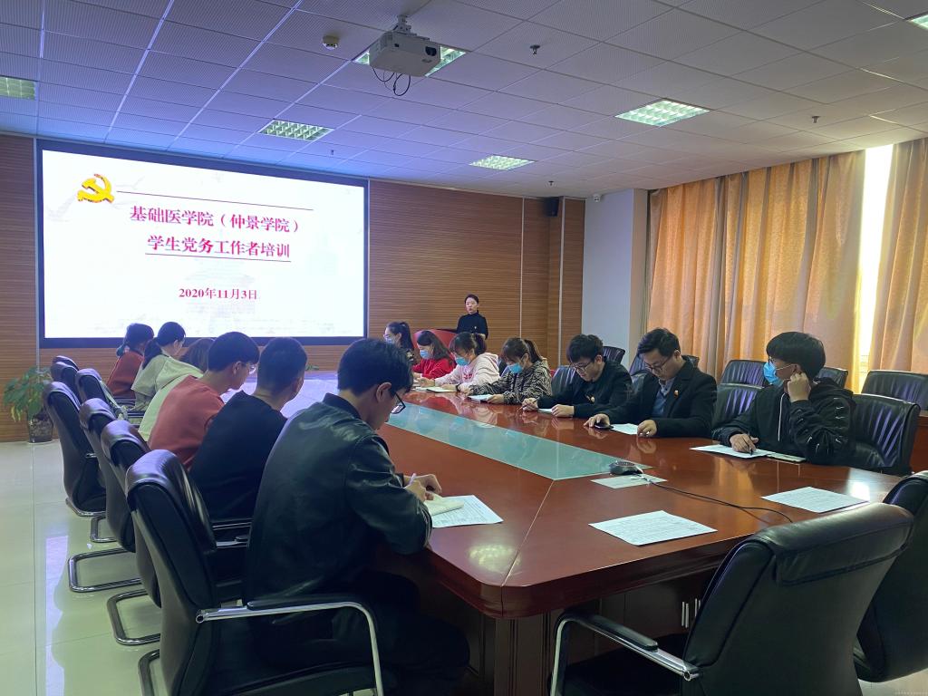 为提升学生党支部党务工作者业务能力和综合素质,扎实推进学生党支部建设,充分激活和发挥青年学生党员生力军作用,2020年11月3日中午,基础医学院(大发学院)党委在学院会议室举办学生党支部党务工作者专项培训会。
