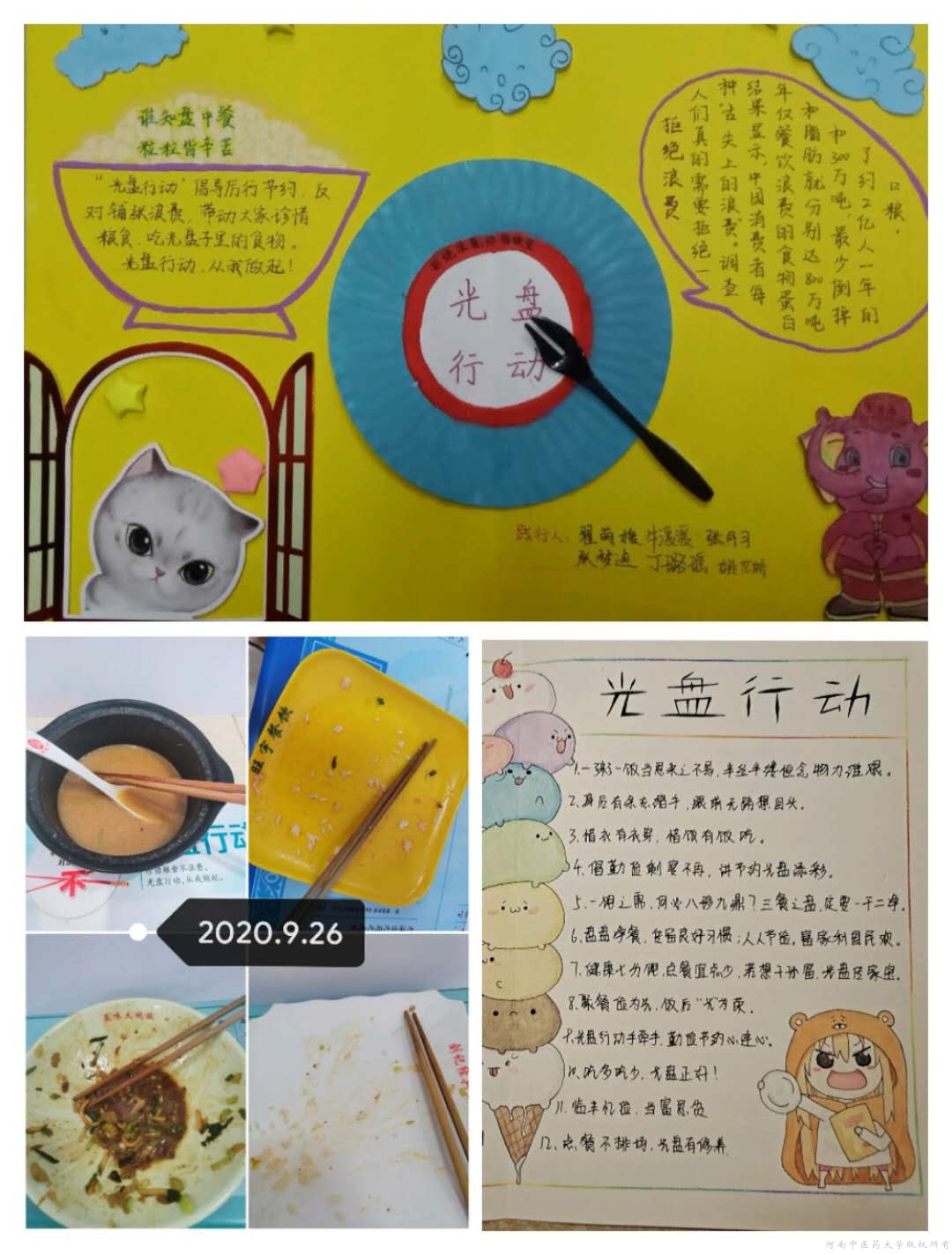 本次活动突破线下活动范围,积极增设线上活动内容,线上内容包括光盘行动打卡15天、拒绝剩宴手抄报及光盘宣传小视频制作三个项目。同学们通过线上按时打卡,上交自己和小组成员的一日三餐光盘照片来践行光盘理念,做到按照自己的需求饭量点饭,不多点,不剩饭,牢记节约粮食。同学们通过上网查阅有关资料制作手抄报,借手抄报这一形式展现自己对于光盘行动的理解,剪辑光盘宣传视频,用视频向大家呼吁:光盘行动要从每个人做起,要从每顿饭开始。