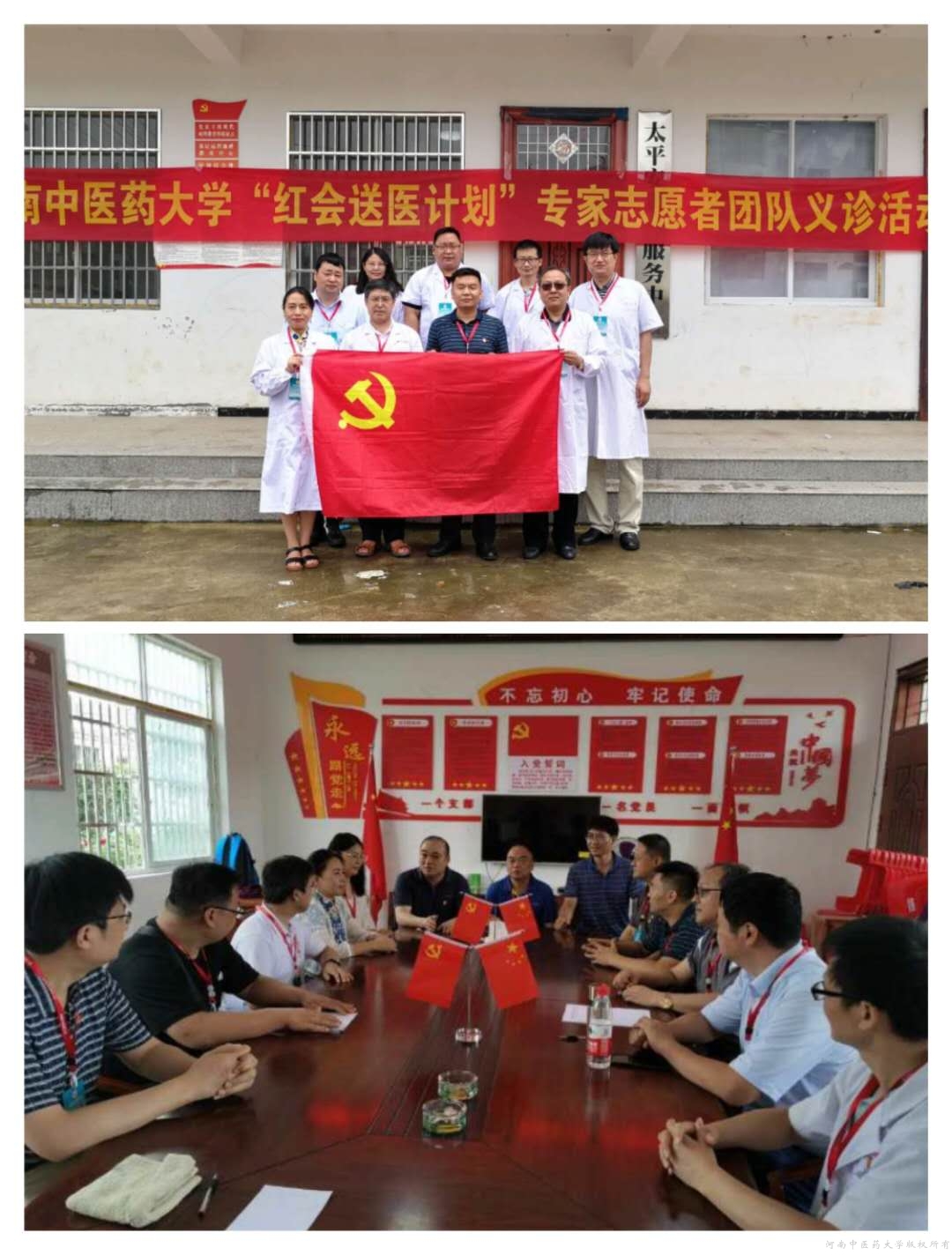 为贯彻落实党的十九大精神,关爱基层群众卫生健康,弘扬中医药文化,普及中医药健康知识,7月26日到28日,在基础医学院(大发学院)党委副书记、工会主席徐里带领下,大发博彩 中诊方剂联合党支部,中医临床基础党支部8名教工党员积极参加河南省红会组织的“红会送医计划”活动,不远千里赴信阳市固始县武庙集镇皮冲村,开展为期三天的义诊、帮扶活动。