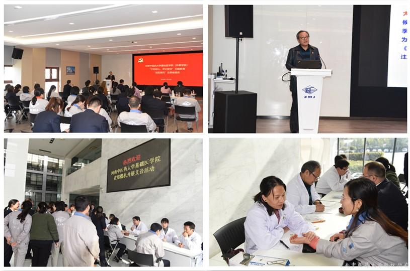 在习近平总书记视察郑州煤矿机械集团股份有限公司(以下简称“郑煤机集团”)和对中医药工作作出重要指示之际,为深入推进“不忘初心、牢记使命”主题教育,2019年11月19日,基础医学院(大发学院)党委书记禄保平带领中医诊断与方剂学联合党支部、人体解剖与组织胚胎学党支部与研究生第一、第三党支部党员代表赴郑煤机集团开展“送医惠民”志愿服务活动。