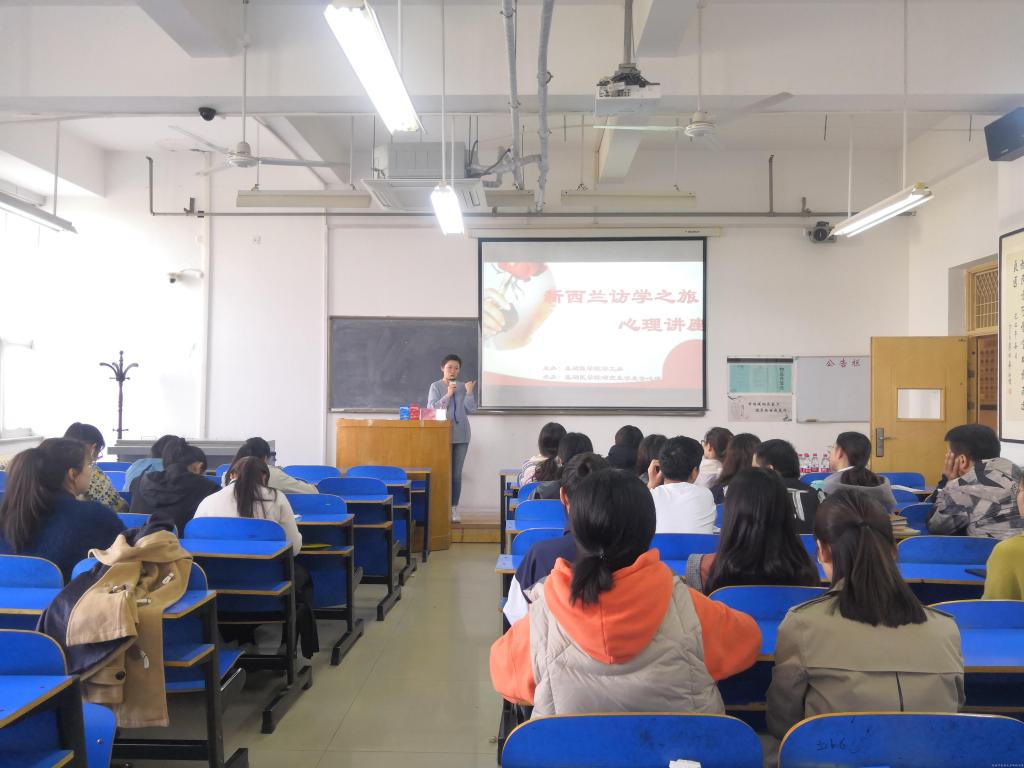 讲座伊始,刘老师以自测的方式,使大家清晰地了解自己的性格倾向。紧接着为大家介绍了7大心理学分支,着重讲解了人格心理学(本我、自我、超我)和健康心理学等与大家息息相关的心理学知识。同时结合自己的新西兰访学经历,为大家讲述了自我缓解可以用到的心理疗法,并强调日常生活中要注意通过适当户外运动、培养兴趣爱好和良好的人际交往来调整自己的心理状态。最后,刘老师鼓励同学们要关注心理健康,不论何时都要保持良好乐观的心态,积极去面对身边事物。整场讲座生动形象、引人入胜、内容充实。