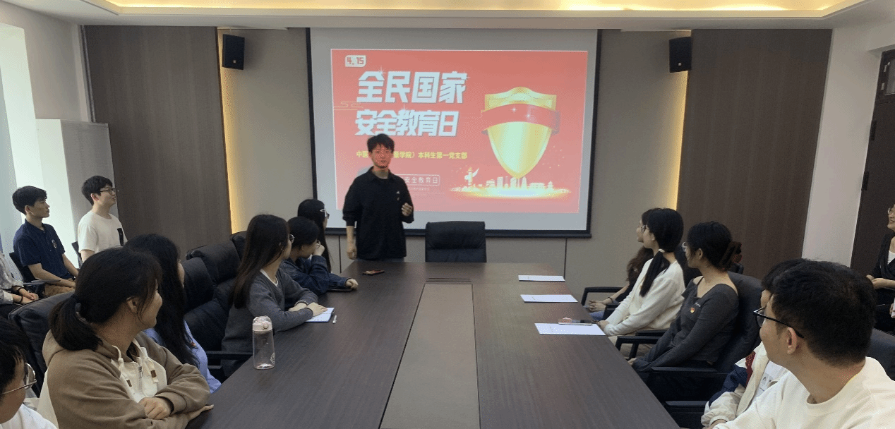 本网讯(文图/赵申苒)为深入贯彻落实习近平总书记关于全面加强国家安全教育的重要指示,引导支部党员深入学习贯彻总体国家安全观,提升国家安全意识和素养,4月15日,大发博彩 本科生第一党支部开展“学习总体国家安全观”主题党日活动。此次会议由本科生第一党支部组织委员黄浩轩主持,全体党员参加。