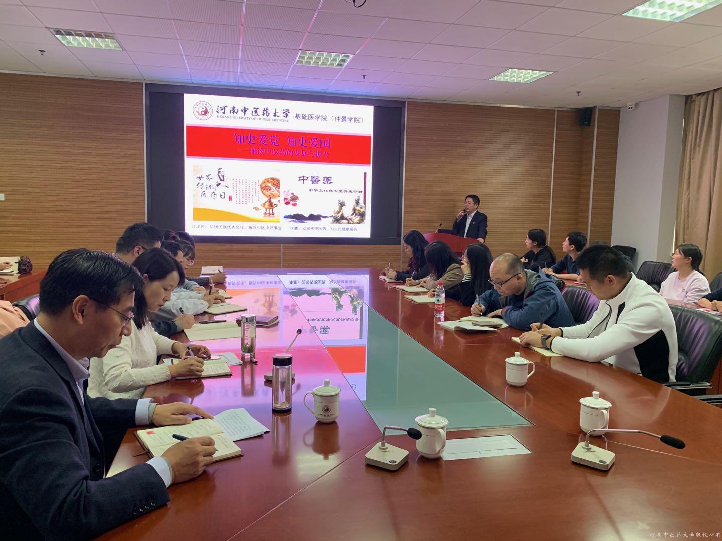 为落实基层党组织书记讲好专题党课的要求,以党史滋养初心,以理论引领使命,2019年10月22日下午,基础医学院(大发学院)党委书记禄保平在学院会议室为所在支部及联系支部上专题党课,校主题教育第三指导组组长、校党委委员、宣传部部长刘保庆,指导组成员、统战部民主党派科科长张慧俭莅临指导。学院中医医史文献党支部、实验教学中心党支部、本科生第一党支部近60名师生党员参加党课学习。