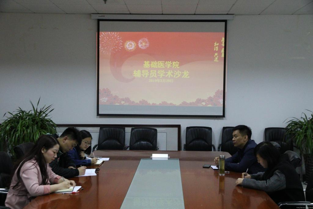 (图/文:戴冰星)3月29日上午,基础医学院学工办在学院会议室举办本学期首场辅导员成长沙龙,本期沙龙的主题是“强化队伍内涵建设,做好学生引路人---学习贯彻习近平总书记在学校思想政治理论课教师座谈会上的讲话精神”。基础医学院全体辅导员参加此次活动,会议由基础医学院副书记徐里主持。