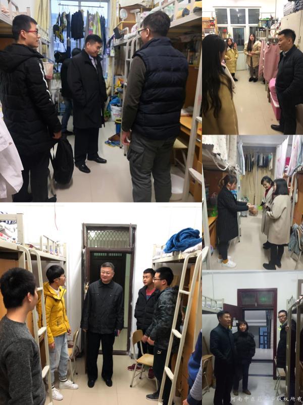 新学期伊始,为全面了解学生返校情况及思想状况,排查学生宿舍安全隐患,2月24日晚,基础医学院领导班子在李根林院长的带领下和学工办全体老师一起深入学生宿舍,实地查看,面对面与学生交流。