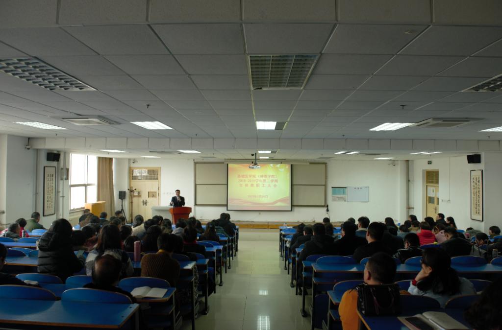 2019年2月24日下午,基础医学院(大发学院)在四楼阶梯教室召开新学期工作会议。全院教职工参加了此次会议,会议由党委副书记徐里主持。
