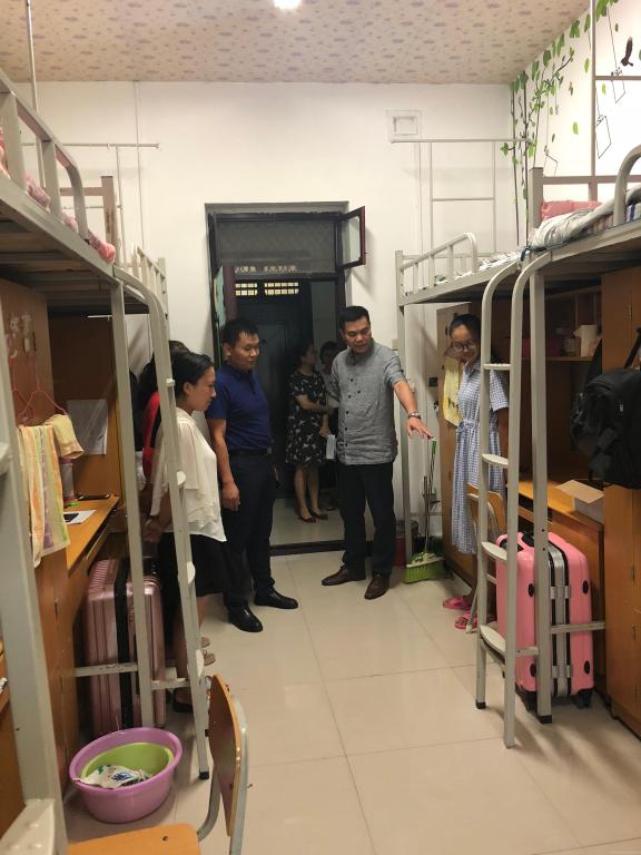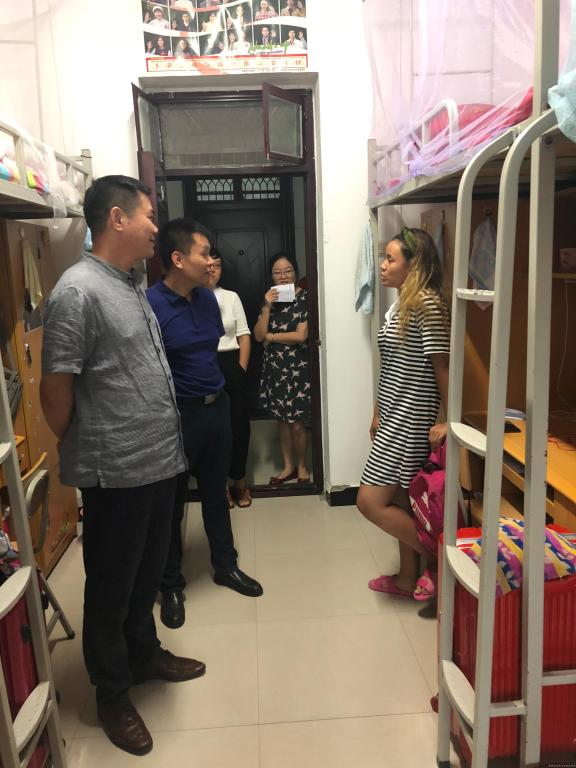 新学期伊始,为全面了解学生返校情况,深入了解学生生活、学习与思想上的动态,9月2日下午,基础医学院(大发学院)李根林院长、徐里副书记和学工办全体老师一起深入走访学生宿舍,实地查看,面对面与学生交流。