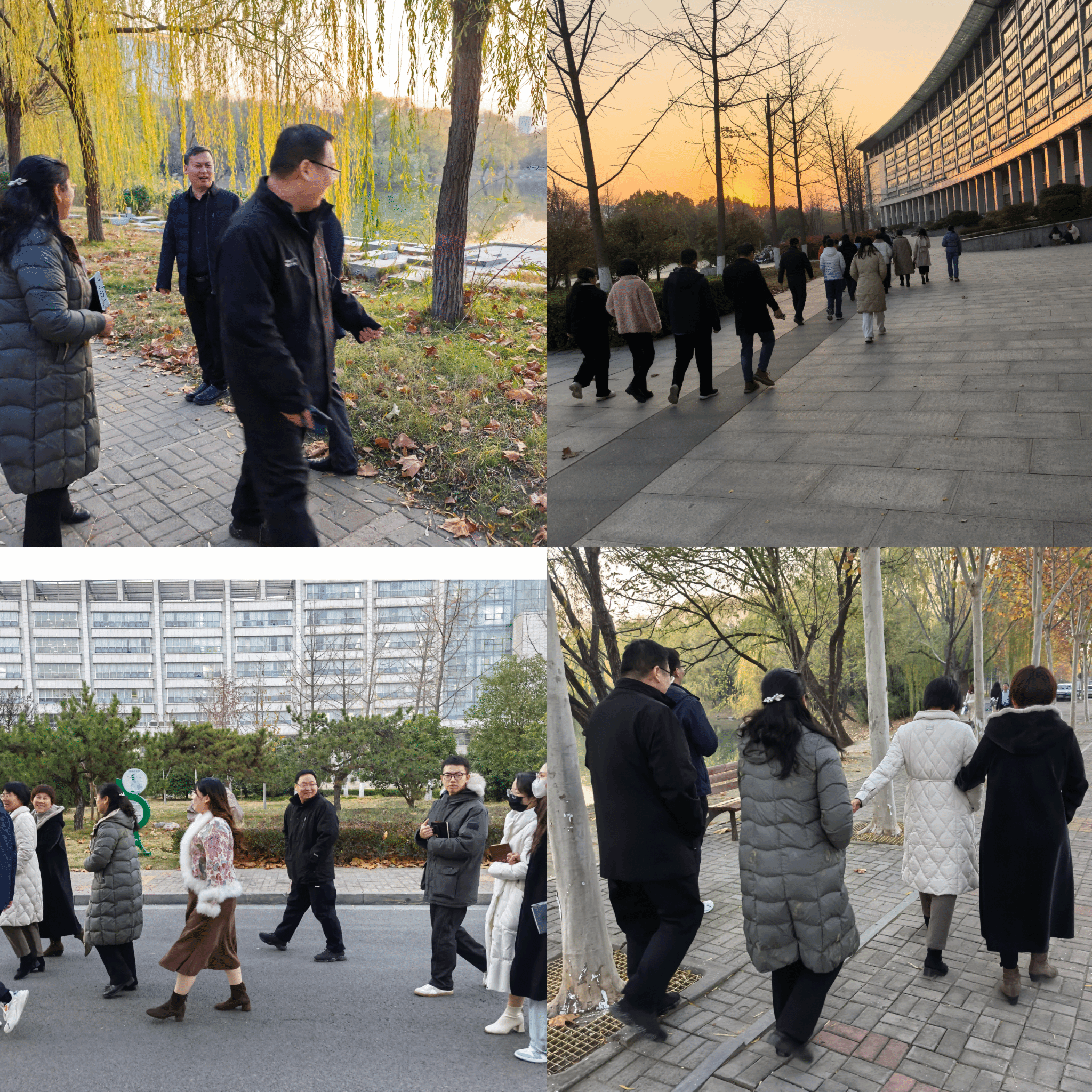 在冬日的暖阳照耀下,老师们齐聚在教学楼前,合影留念后,健步走活动正式拉开帷幕。老师们按照既定路线,有序出发。健步途中,大家相互交流思想,畅谈生活趣事,一路欢声笑语,还有老师驻足在美景中拍照留念,记录美好时刻。