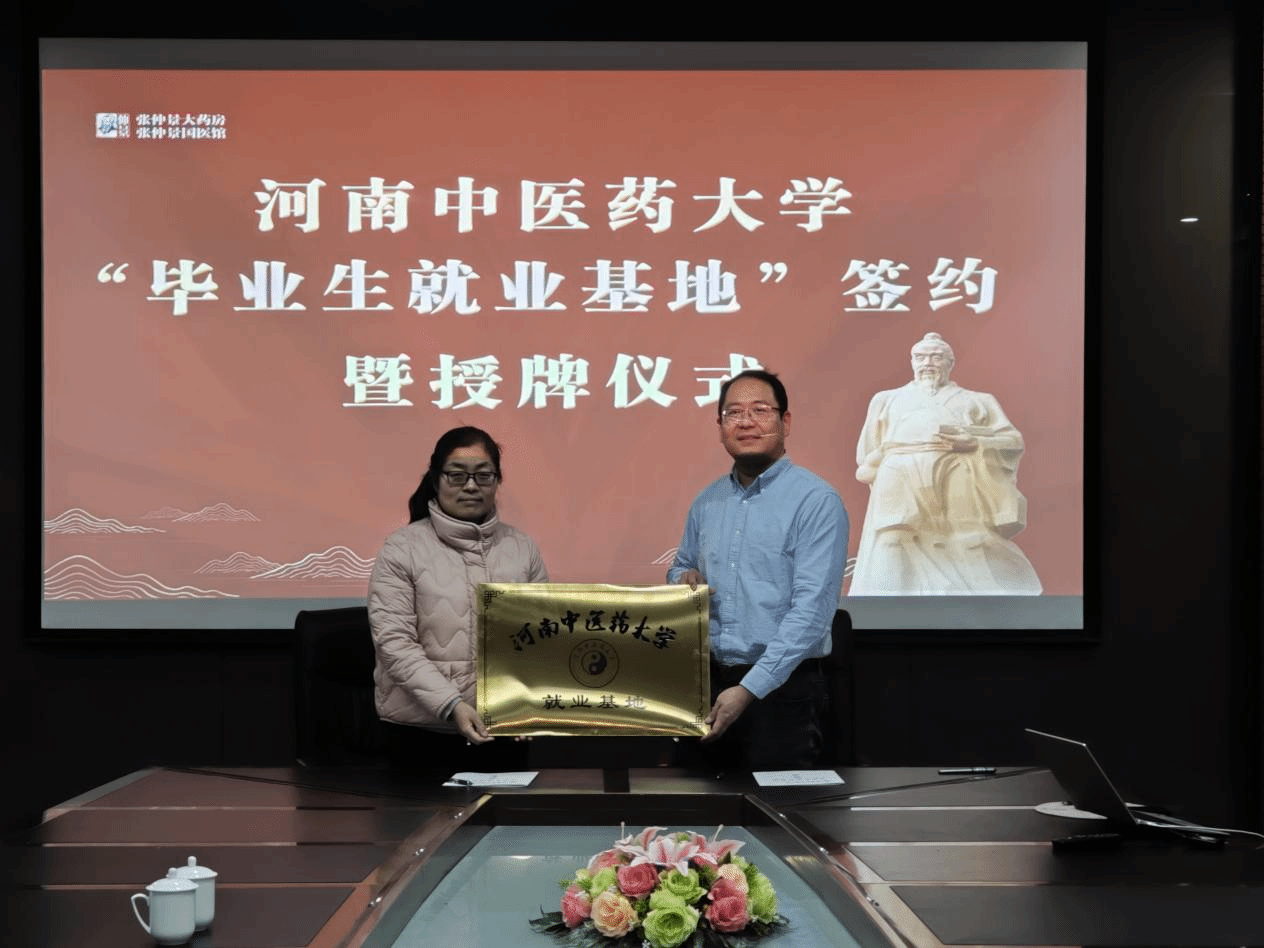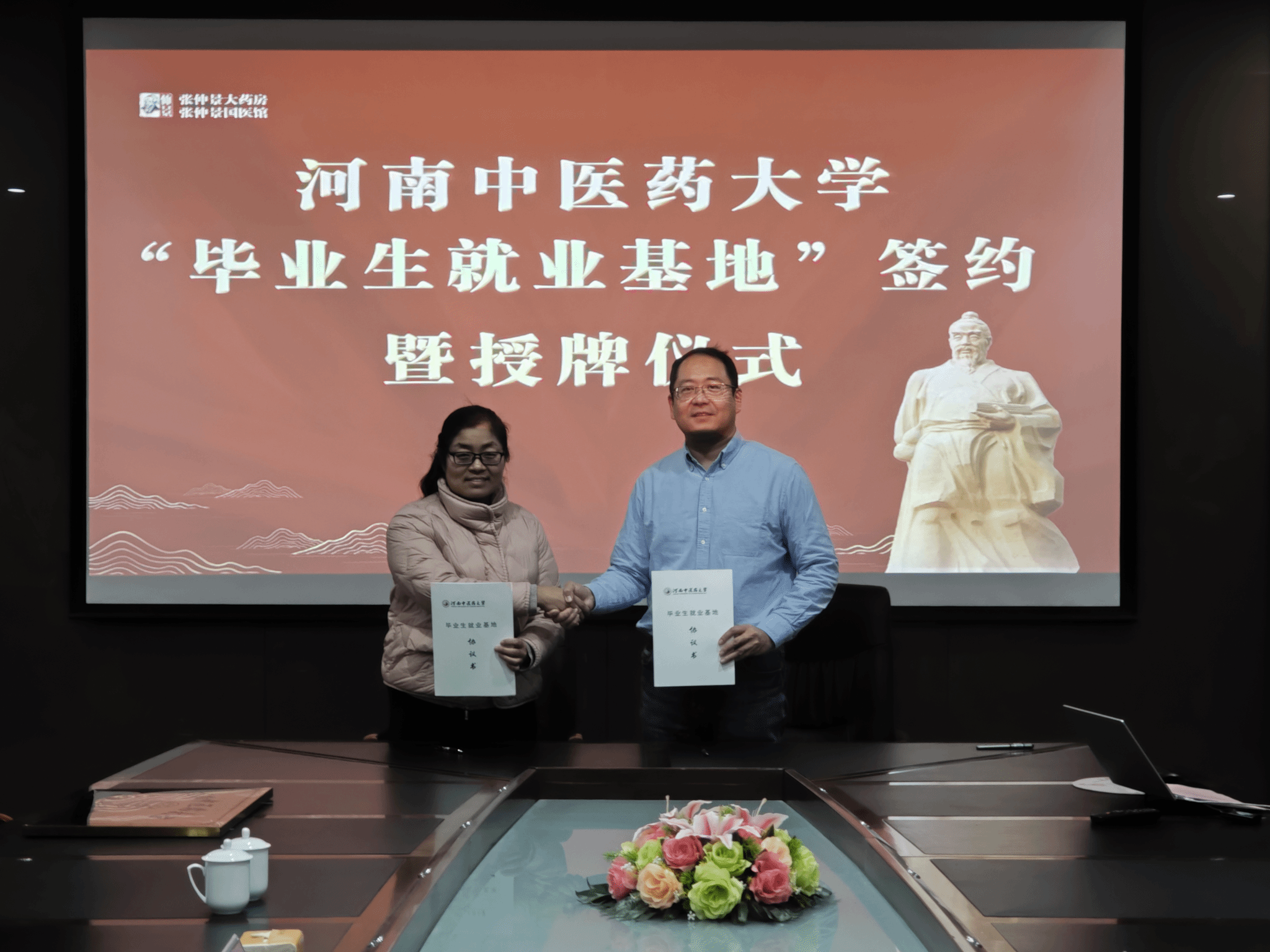我校大发博彩官网 赴河南张大发国医馆有限公司开展访企拓岗暨“毕业生就业基地”签约授牌仪式