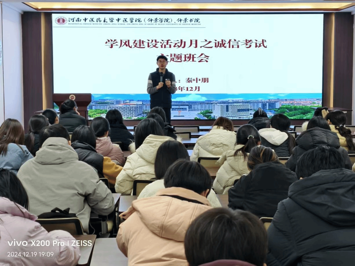 在班会中,各班辅导员老师全面领学了《河南中医药大学考试违规处理办法》《河南中医药大学学生违纪处分规定》中有关考试的各项规定,着重强调了“以诚赴考、以信取胜、诚信考试”的重要性,详细讲解了考试作弊的危害及后果,鼓励同学们积极备考,认真复习,查漏补缺,提升效率,以最佳的状态和饱满的精神“嬴”战考试。