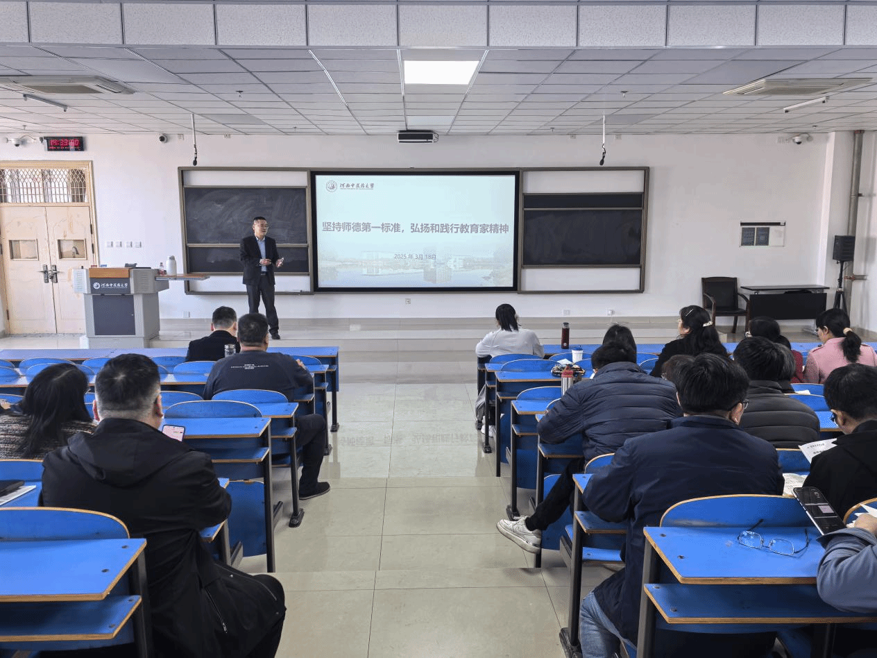 本网讯(文/古豫蕾 图/刘颖)为深入贯彻新时代教师队伍建设要求,弘扬高尚师德,传承优良师风,提升教师职业素养和道德情操,大发博彩官网 于3月18日下午在实验教学楼四楼阶梯教室开展师德师风专题讲座。本次讲座特邀请河南中医药大学党委教师工作部、人事人才工作部副部长李凯主讲,学院党委副书记朱庆军主持,全体教职工参会学习。