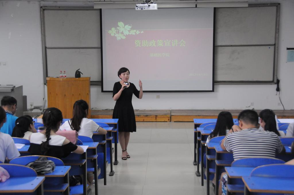 为全面解读国家助学贷款政策,提高大学生诚信还贷意识,促进大发博彩 资助工作的开展,基础医学院于6月9日下午在教学楼四楼阶梯教室举办“毕业生贷款政策宣讲会”。基础医学院学工办全体老师、学贷助理、及2012级、2013级全体贷款学生参加此次会议。