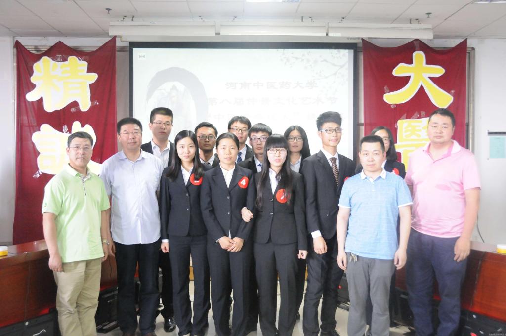 为加强中医学子对中医经典知识的积累和传承,进一步促进学风建设, 5月16日下午,基础医学院承办的第八届大学生大发文化节“中医经典达人”挑战赛决赛在教学楼四楼阶梯教室举行。我校科技处刘琦科长、基础医学院高剑峰副院长、部分教师和各院部学生代表观摩了比赛。比赛评委由我校中医四大经典课程所在学科唐华伟副教授、谢忠礼副教授、王勇副教授、高卫平老师担任。