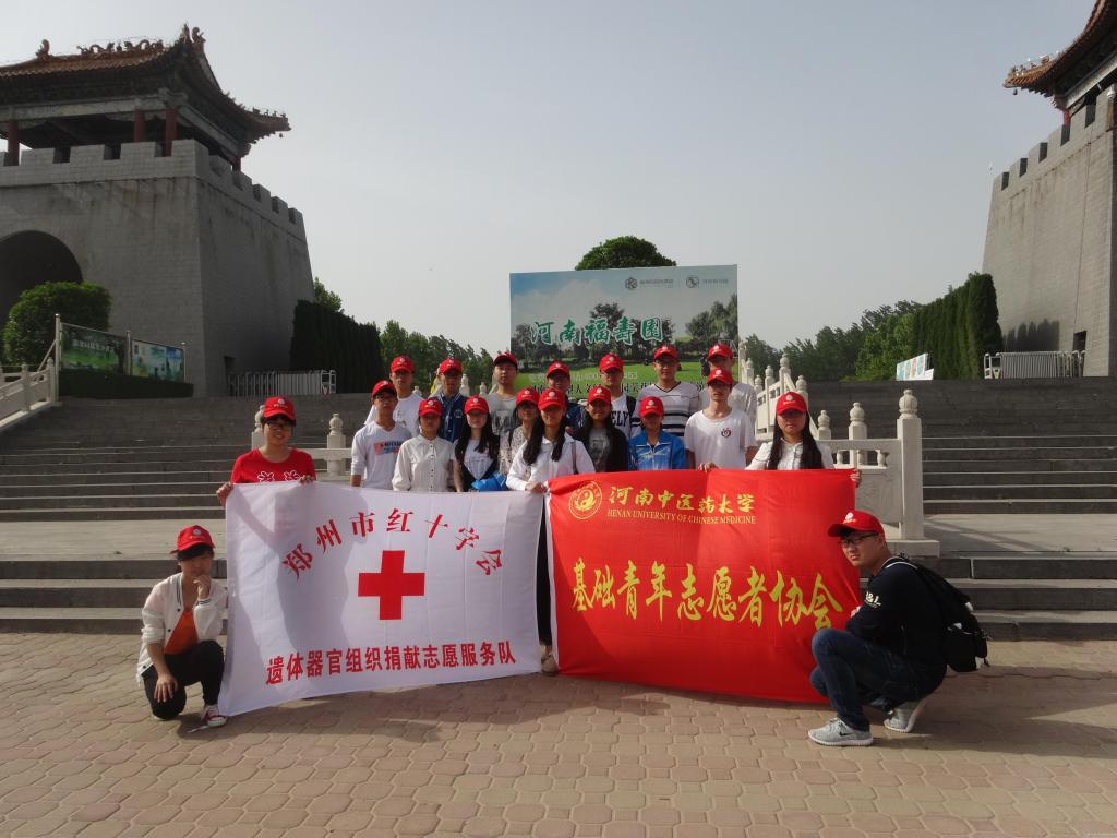 2017年5月5日,在5.8世界红十字日来临之际,基础医学院志愿者小分队二十名成员在校解剖实验室主任陈四清副教授的带领下,参加郑州市红十字会以“绽放生命传承爱心”为主题的遗体组织捐献缅怀活动。