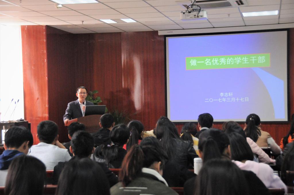 2017年3月17日中午,基础医学院在教学楼BS820举办学生干部培训讲座,此次讲座特邀我校学生处资助中心副主任李志轩老师做培训,参与培训的人员包括学生会成员、各社团负责人、在校班级班长、团支书、博雅崇实实践班全体成员。