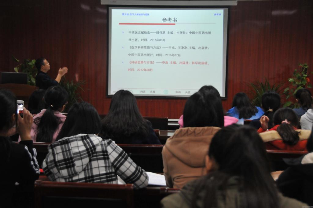 11月11日晚,基础医学院科研实验室中心主任杨联河副教授在BS820开展以“医学文献检索与综述”为题的讲座,此讲座为大发博彩 大学生基础医学科研基本技能实训系列的第六讲。