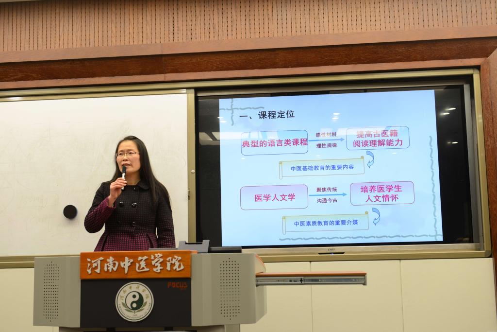 观摩课上,首先由叶磊老师进行了《医古文》“秦医缓和”部分的说课和示范教学。叶老师的授课形象生动、教学设计独特、语言生动、重点难点突出、思路清晰、简练准确、深入浅出,赢得了老师们的一致好评。随后,李文老师结合《教师礼仪》从教师仪容仪表、言谈礼仪和仪态礼仪等方面进行了亲身示范和互动指导。李老师的讲解引起了在场教师的共鸣,大家纷纷表示受益颇多。两位教师语言生动、收放自如,以高尚的师德和高超的教学艺术,赢得了在场教师阵阵热烈的掌声。