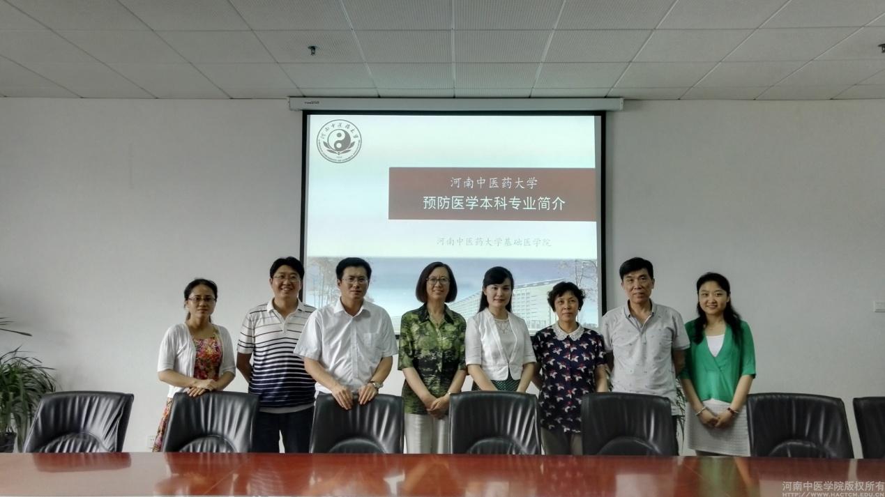 2016年6月30日,河北中医学院预防医学学科石晶教授一行3人,到基础医学院对预防医学专业建设考察、调研。基础医学院副院长曹珊、预防医学学科申杰教授、闫国立主任以及预防医学学科、实验室教师、教研办相关人员陪同参观、座谈。
