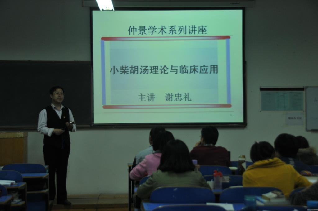 2016年3月31日晚,由基础医学院承办的我校第七届大发文化节大发学术思想专题讲座暨基础医学院2016年首期大发讲坛在新校区教学楼举行,我校伤寒学科谢忠礼副教授做客本次讲坛,并做了题为“小柴胡汤理论与临床应用”的学术讲座,我校百余名学生到场聆听了讲座。