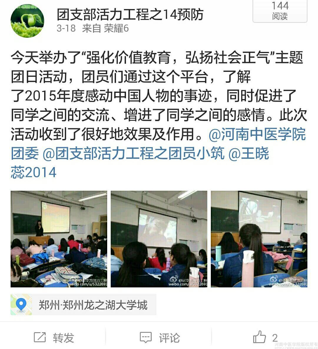 14预防团支部开展主题团日活动的微博截图