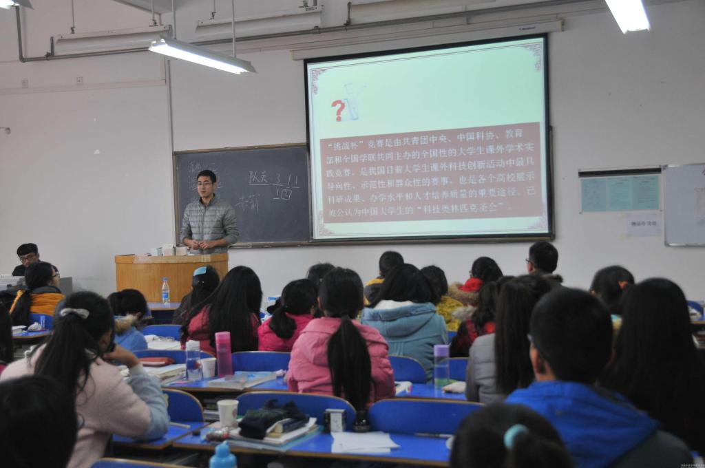 各班宣讲会上,宣讲队成员首先介绍了“挑战杯”竞赛内容、流程、学校相关政策及申报方式。接着,宣讲队结合自身参加“挑战杯”的经验,就同学们最为关注的项目来源及选取、如何组建优秀团队及导师选择等方面进行详细讲解,并举出大发博彩 “挑战杯”国家级银奖获得者王亚东同学的事例,强调了在老师指导下严把作品质量关的必要性。最后,刘旭初老师转达了大发博彩 领导对“挑战杯”工作的高度重视及相关鼓励政策,呼吁同学们以此为契机,在科技创新的道路上努力进取,指出参加创业大赛不仅可以对所学知识进行系统梳理,提升专业素质,同时还锻炼了独立钻研的毅力、能力和团队协作的品质,号召大家把握机会,集思广益,放开眼界,积极参与到“挑战杯”的创作中去。