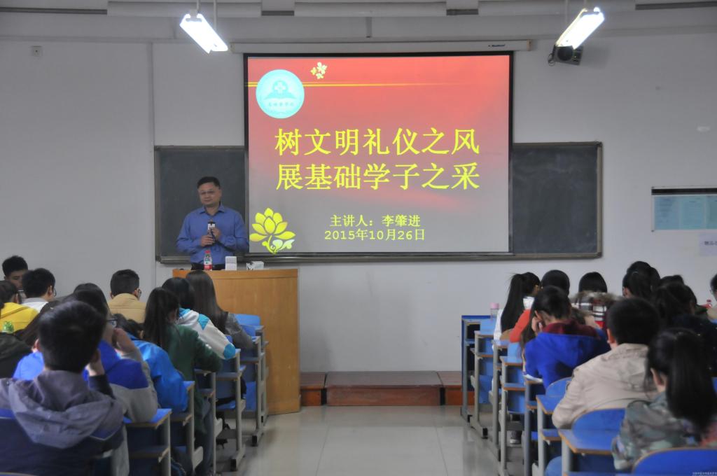 为加强“博雅崇实”实践班成员自身修养,提升学生干部整体素质, 10月26日,基础医学院举办了以“树文明礼仪之风,展基础学子之采”为主题的礼仪讲座。本次培训由基础医学院李肇进副院长主讲,学工办各位老师、“博雅崇实”实践班成员及学生会全体学生干部聆听了这次讲座。