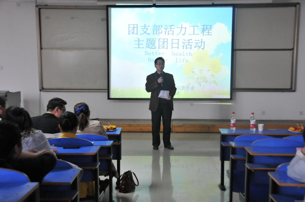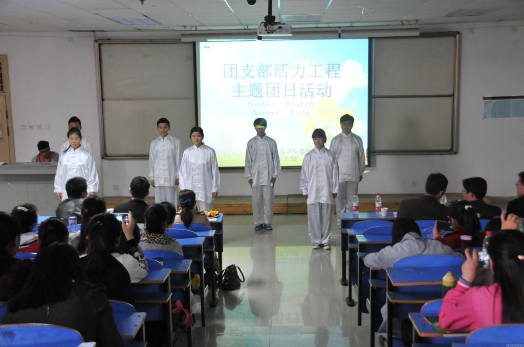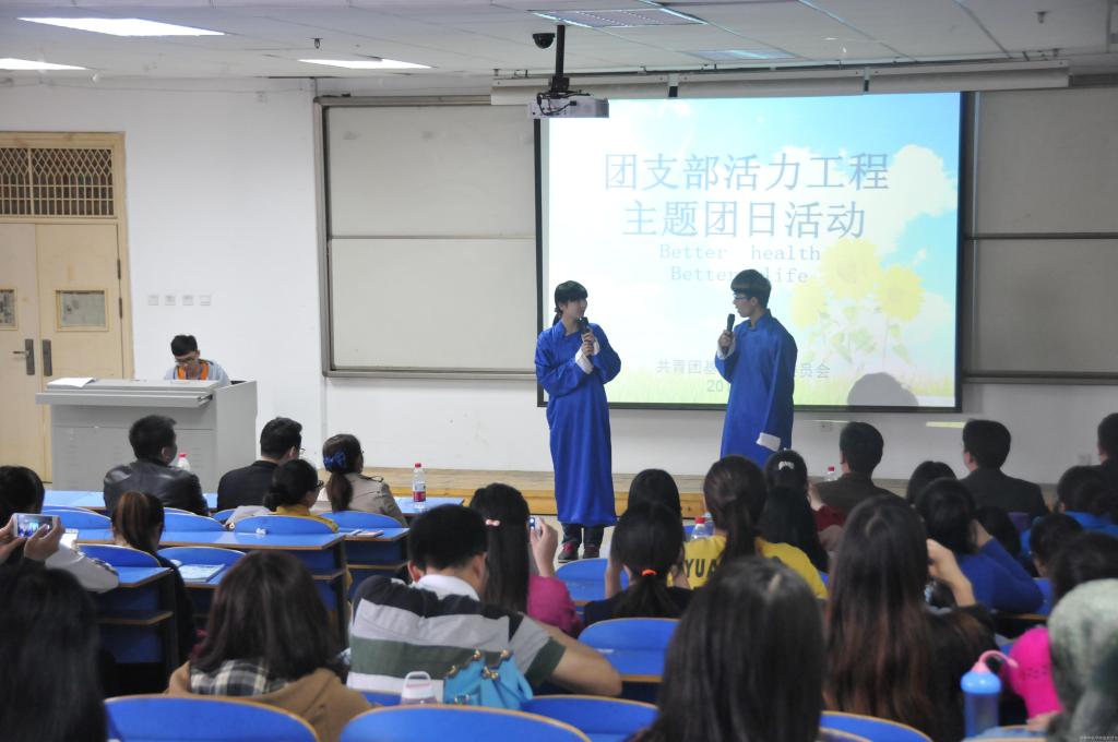 为了响应校团委团支部活力工程主题团日的号召,由基础医学院分团委主办,2013级预防班团支部承办的“Better health • better life”主题团日活动3月30日中午在三楼阶梯教室举行。校团委副书记王晓蕊,基础医学院党委副书记朱平生,预防学科主任、2013级预防班班主任闫国立副教授,中医临床基础学科孙鸿昌老师,基础医学院学工办全体老师、兄弟院系数十位团支书及基础医学院一百余名团员、团干参与此次活动。