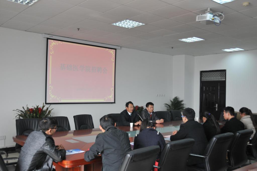 3月14日上午10点,根据多家用人单位的需求,基础医学院在四楼会议室举行专场招聘会。此次专场招聘会基础医学院邀请到许昌仁和骨科医院院长、我校80级优秀校友田松院长及渑池县人民医院、镇平县中医院等用人单位。基础医学院2015届中西医临床专业、预防医学专业数十名毕业生到现场面试。