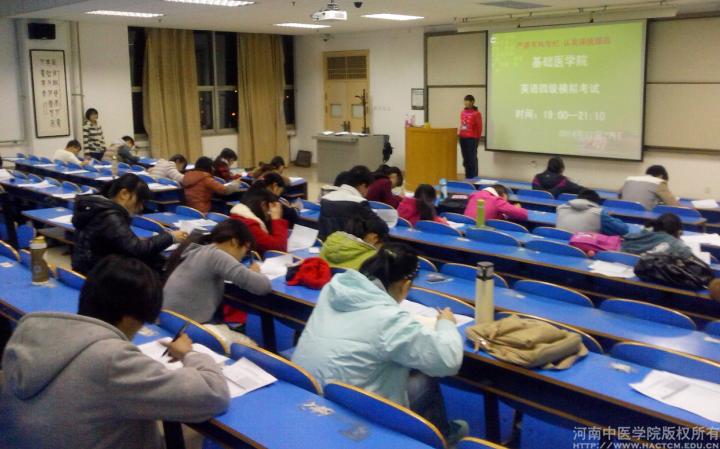 此次模拟考试设四级、六级考场各一个,两场考试同时进行,所用试卷遵循四、六级考试大纲规律,从近年真题经典题库中抽出选题,按四、六级试卷结构进行制印,尽量还原四、六级考场真实氛围。本次英语四六级模拟考试为同学们提供了一个自我检验、自我锻炼的实践平台,通过考试,使同学们更进一步发现和正视自己的不足,明确备考目标,合理分配时间,做好备考计划。(基础医学院学工办)