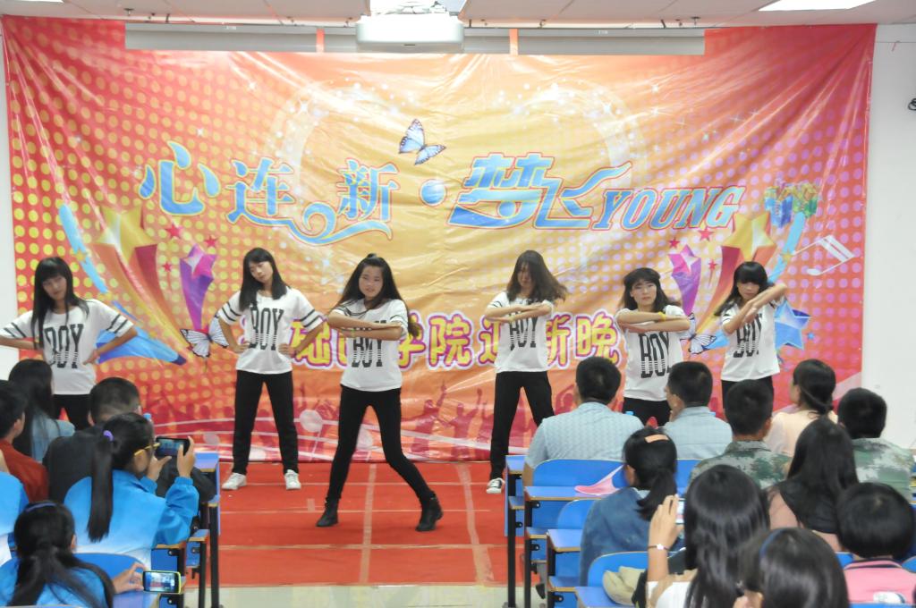 热情洋溢的开场舞《Poker face》拉开了晚会的序幕。舞蹈《烟花三月》、《星月神话》展现了我国民族舞蹈文化的魅力;街舞《Love》、曳步舞《划破曳空》给现场带来激情,体现了当代大学生的激扬青春;小品《打针风波》、《不得不说的故事》、相声《满腹经纶》,表演生动活泼、语言幽默风趣,引得场上笑声不断;在筝萧合奏的《剑伤》、西洋乐器演奏的《克罗地亚狂想曲》、古筝合奏的《梁祝》和吉他弹唱的《平凡之路》中,各种乐器竞显魅力,为观众带来一场视听盛宴;Cosplay舞台剧用独特的发型、奇异的服装、搞怪的表演赢得观众的一致好评;一群大男孩儿用帅气的装扮、炫酷的舞姿演绎流行金曲《小苹果》,使晚会气氛达到高潮。看到同学们热情飞扬,教官们也忍不住登台献艺,卢教官一首粤语《不能忘记你》、张教官行云流水的五行拳赢得了全场一致的喝彩声。同时,还有新生积极参与的歌曲《一路向北》、《The show》让我们看到了他们的热情,傣族舞《彩云之南》引领我们走进了云南的绚丽美景之中。晚会在柔美丽的歌曲联唱中结束。