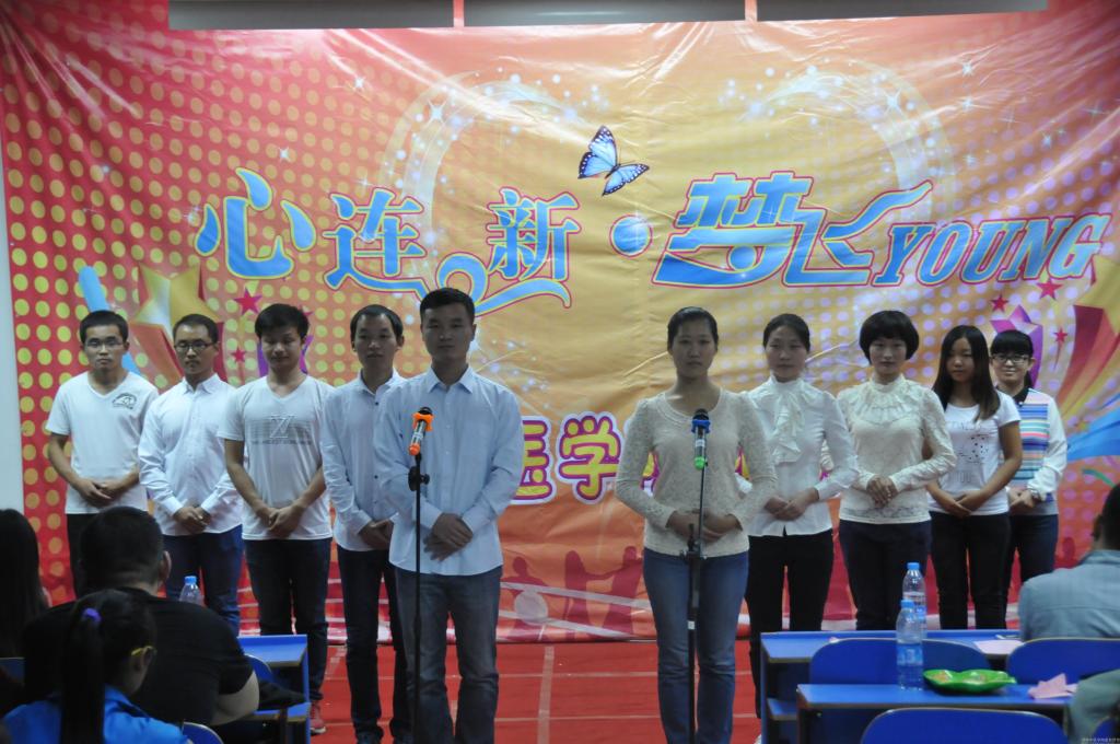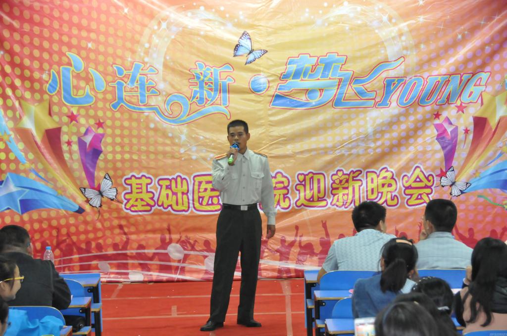 金桂飘香,青春飞扬。为迎接2014级新生,丰富大家校园生活,基础医学院2014年“心连新 梦飞Young”迎新晚会于9月28日晚6点30分在教学楼七楼阶梯教室隆重举行。新生全体军训教官和学工办全体老师参加了晚会。
