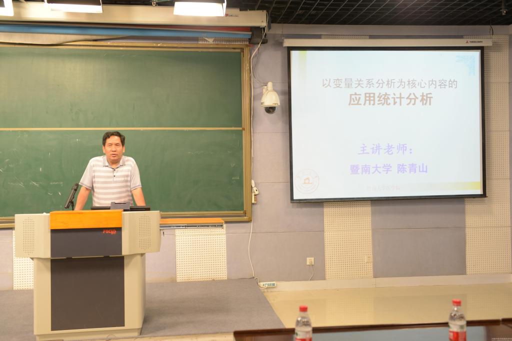 陈青山教授结合自身多年教学实践经验,从统计学应用的现状“有用、难学、难用”开始,指出统计学习中的难点:基本概念、思维方法、建数据库、应用条件和统计应用,通过其首创的“目的—变量类型—数据库—变量间关系分析”的统计学教学方法,颠覆了传统统计学教学模式,较好地解决了“统计学难学、难用”的教学难题,使研究者可以迅速选择正确的统计学分析方法,同时,采用其编程的excel统计分析方法,可迅速获得统计分析结果。陈青山教授严谨而不失幽默的教学态度,创新实用的教学思路和方法,受到了在座师生的一致好评。之后,陈青山教授还围绕统计学习中的疑难问题与在座师生展开了积极互动,对于大家的踊跃提问,陈教授都给予了认真解答。