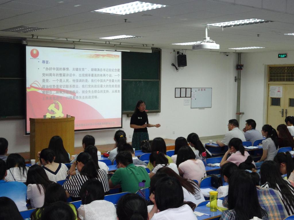刘老师以自己的亲身经历为例,运用风趣的语言、生动的史料,深入浅出地为同学们讲述了党的群众路线深刻含义、坚持党的群众路线的重要性,深刻剖析了目前我国经济社会改革发展中显现的新问题以及所面临的复杂多变的国际外部环境,全面阐述了开展党的群众路线教育实践活动的动因和要义,详细解读了我们目前所面临的“四种考验”和“四大风险”,阐明了开展党的群众路线教育的重大意义。刘老师引经据典、融会贯通,以“照镜子、正衣冠、洗洗澡、治治病”的总要求,教育引导学生党员干部如何进一步开展好党的群众路线教育实践活动。