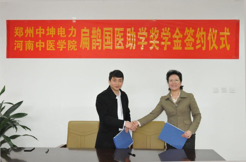 郑州中坤电力有限公司在我校设立“扁鹊国医助学奖学金”