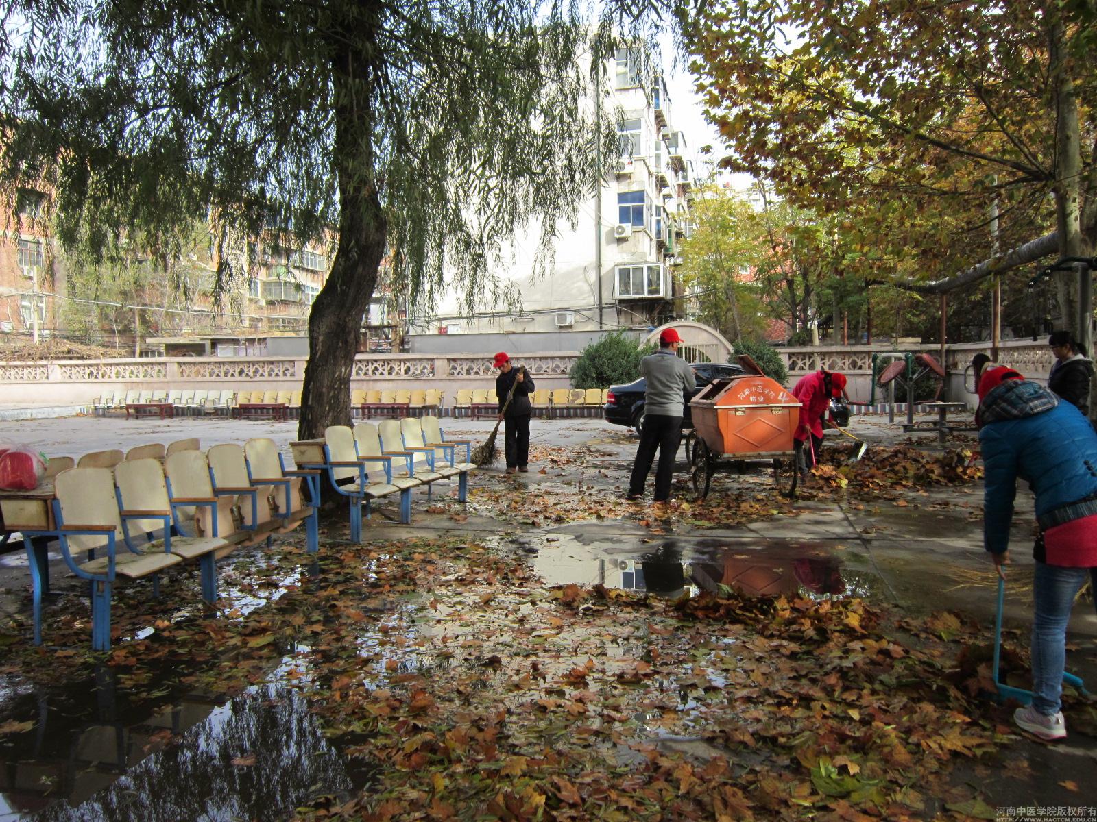 由于周六的一场冬雨,老校区离退休职工大学院内落叶满地。志愿者于当天下午三点到达老校区,随即开始了清扫工作。冬天的寒意丝毫没有影响志愿者们的热情,同学们挥动着手里的打扫工具,认真为退休老师们打扫室内外活动场地。过程虽然辛苦,可志愿者热情高涨,欢声笑语。本次活动受到了离退休职工活动中心老师的肯定与赞扬。活动结束后,志愿者和老师合影留念,记录下了这次美好而有意义的活动。