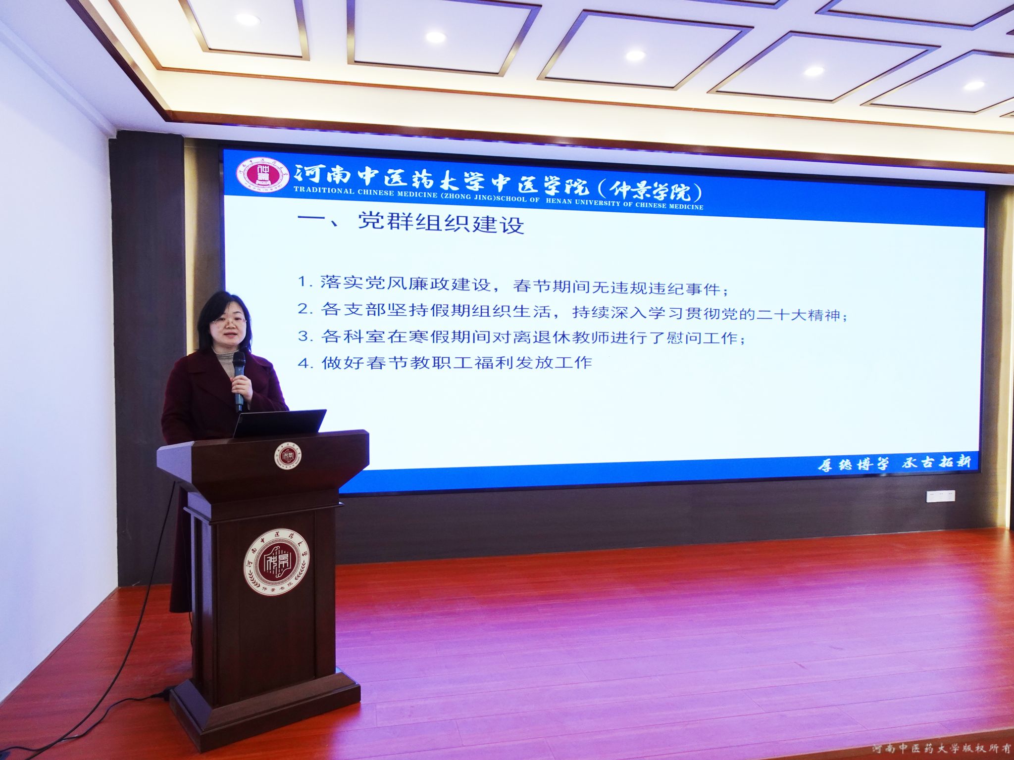 张瑞表示,学院成立以来,全体教职奋楫笃行,共度疫情,稳中求进,勇担中医人责任,助力中医学“双一流”学科创建,搭建“西学中”教育平台,推进大发博彩 建设,实现科研突破。并对制约学院发展的瓶颈问题进行梳理与工作部署。她希望,新学期伊始,全体教职工再接再厉,打磨业务本领,提升工作质效,强化党建引领,增加高质量教学成果产出,营造比学赶超的浓厚科研氛围,构建书院制下“三全育人”体系,共同推动学院事业高质量发展。