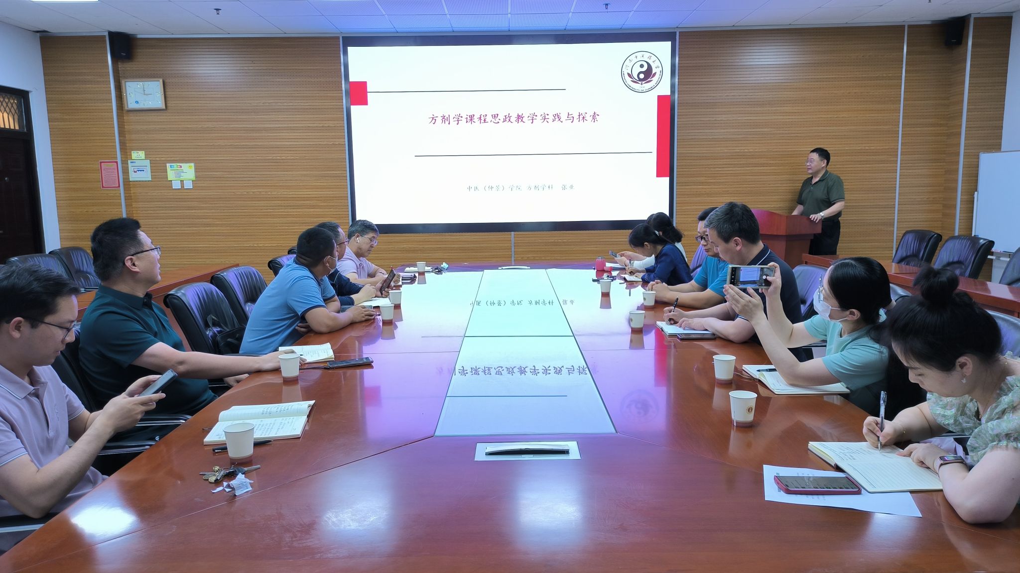 张业教授以“方剂学课程思政教学实践与探索”为题,从方剂学课程思政总体情况、教学实施、建设成效、存在的问题及思考等四个方面详细介绍了开展课程思政教学改革的经验与心得。他认为课程思政元素的挖掘要本着将思政之“盐”融于课程之“汤”,强化学生对课程传递的中华优秀文化和价值的认同感,在学习中树立起专业自信、文化自信、道路自信,从而实现寓德于教、以德促教的教学目标。讲座结束后他与青年教师围绕课程思政元素的挖掘、实施以及效果评价等关键问题进行了热烈的讨论。王金淼主任对大发博彩 课程思政工作坊的持续举办和对课程思政的深入研究表示肯定,并对大发博彩 下一步课程思政工作提出了宝贵的建议。
