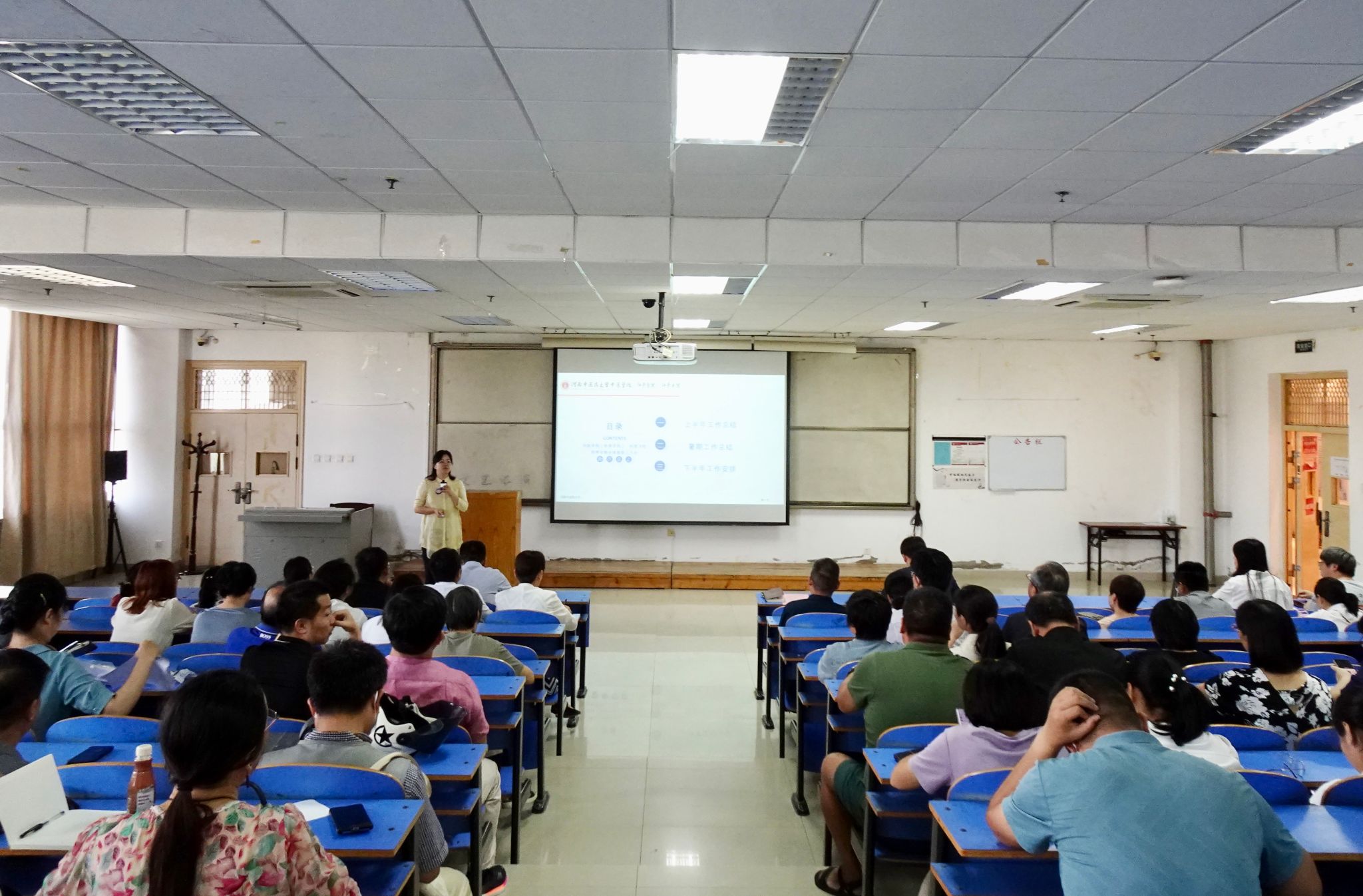 本网讯(文/张蓝熙 图/史占江)2023年9月3日上午,大发博彩官网 于教学实验综合楼四楼阶梯教室召开2023年度秋季学期全体教职工大会。会议由学院副院长刘文礼主持。学院全体教职工参加。