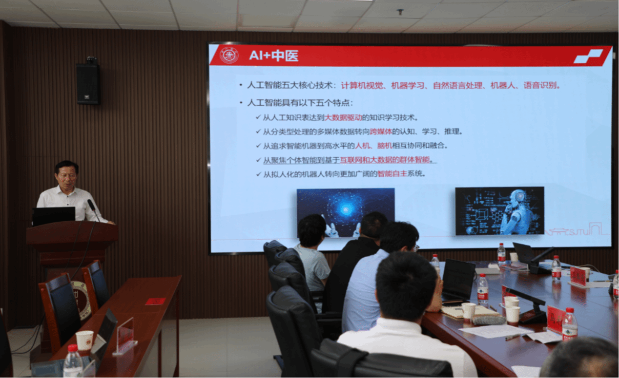 马利庄教授以“计算机视觉技术在大健康领域的探索与应用” 为题,讲授了人工智能五大核心技术:计算机视觉、机器学习、自然语言处理、机器人、语音识别。认为AI+中医药是中医药未来发展的全新领域,通过AI技术赋能中医药领域,可以研发各类中医智能诊疗技术装备、机器人,整合中医知识图谱及理法方药大数据资源库,临床病证大数据资源库、数据库与标准化平台,发展中医药行业新的创新模式。并介绍了中医诊疗多源异构数据的多层次智能融合关键技术,基于知识图谱的诊疗数据关联性挖掘与可解释性研究,基于智能评估模型的诊疗技术平台研发,以及DMCV实验室在AI+大健康领域的一些探索。