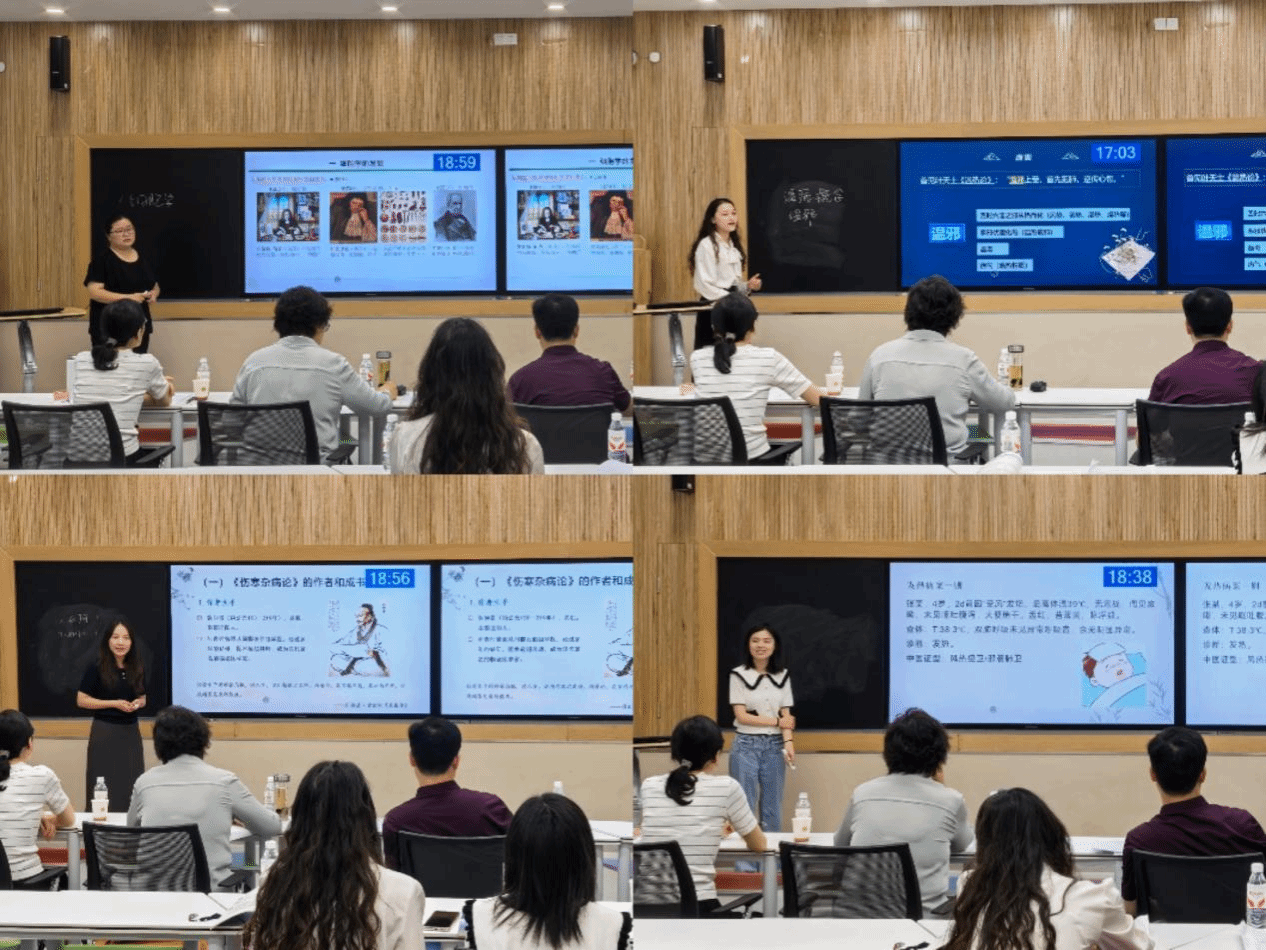 四位新进教师紧扣课程特色与教学规范,从教学设计、内容呈现、教姿教态、板书书写、课堂互动等教学环节进行展示。试讲结束后,评委根据试讲教师的表现提出了针对性建议,并鼓励新进教师强化听课学习,借鉴优秀经验;深化教学实践,创新教学方法;持续提升教学能力,夯实专业成长基础。