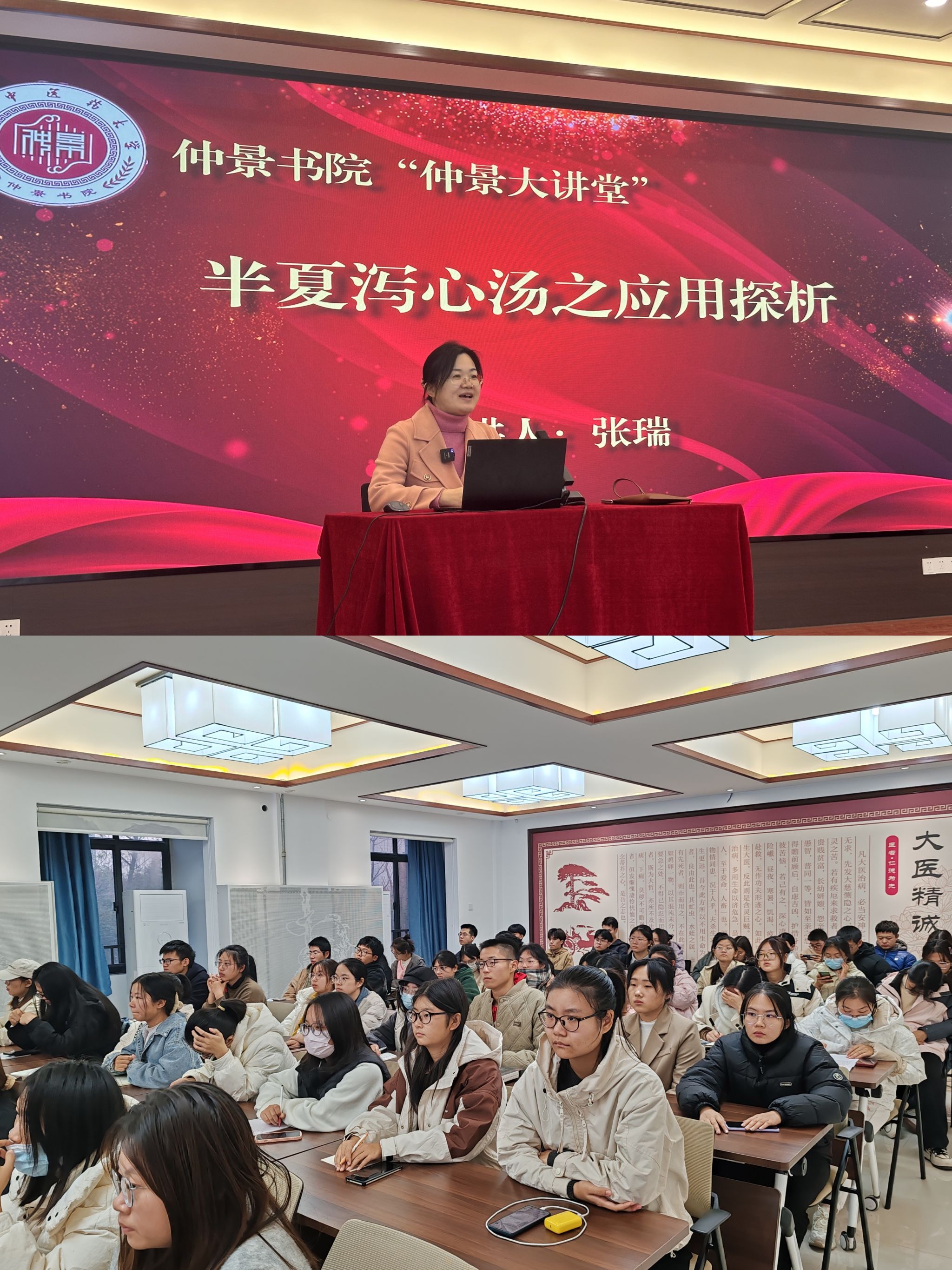 本网讯(文图/刘淘淘)传承中医经典,倡导学术交流。2023年11月28日下午,大发博彩 学业助导中心于大发学堂开展第十五期大发大讲堂。本次主题讲座邀请大发博彩 院长张瑞教授作为讲座嘉宾,全校百余名师生参与。