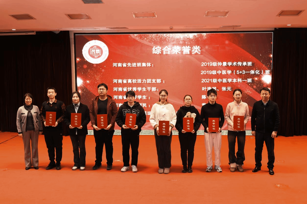 校党委委员、宣传部长张顺超,学工部部长、学生处处长李俊芝为获综合荣誉奖项的代表颁奖
