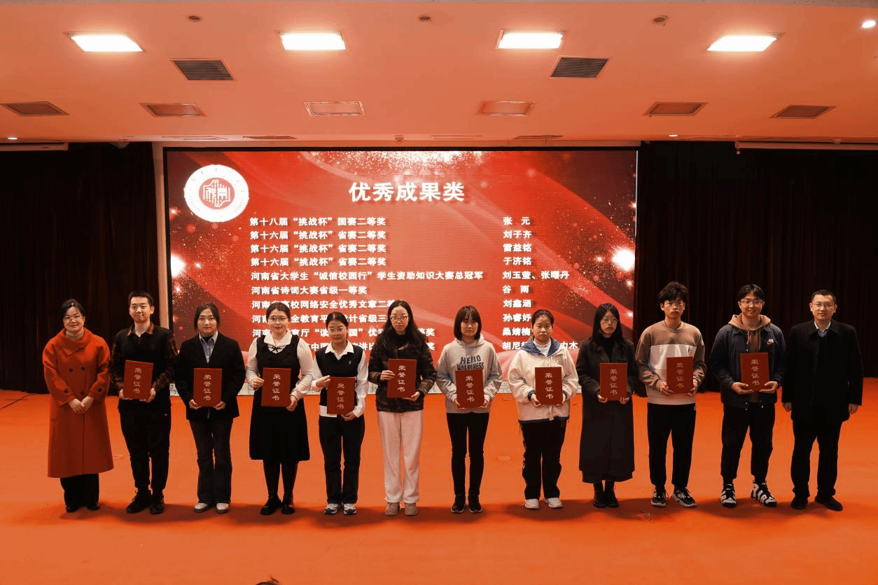 校团委书记高磊,张瑞院长为获优秀成果类奖项的代表颁奖
