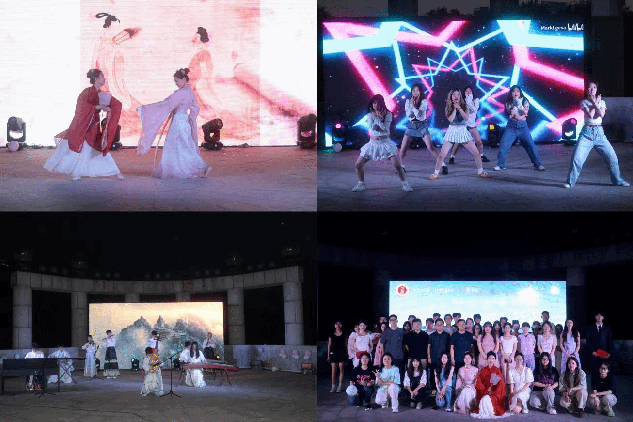 夏日热浪轻抚,万物生长,“蝉鸣山海,踏风逐梦”活动也如火如荼地展开。舞台上,热情洋溢的歌舞让观众们情不自禁地跟着节奏律动;悠扬的音乐声如同海风般轻抚人们的心灵。 本次节目之中,民舞《青花瓷》、器乐演奏《浮光》、古典舞《湘君湘夫人图》、歌伴舞《如愿》等一系列表演充分展现了中华传统文化的魅力,优美、柔和的舞姿,悠扬的弦乐声带领着我们深刻体会中国传统文化的美。街舞《Power》、《Mr chu》、《sonar breaker》、《Attention》让我们领略了现代舞蹈的力量与激情,极具动感的舞姿充分体现了她们对于舞蹈的热爱,同时也打动着在舞台下的观众。声乐《直到那一天》、《轻红》、吉他弹唱《程艾影》等轻音乐,蕴含着细腻的情感,慢慢包围着听众,使在场师生陶醉其中。除了歌舞外,还有根据三请诸葛亮改编小品《如果先生不出山》,在诙谐幽默的同时也蕴含了中国传统文化;充满爱国情怀的诗朗诵《我的祖国》,带领大家在文字和语言中畅游祖国的大好河山。由2024届毕业生代表表演的朗诵《给毕业班的散文诗》,表达了毕业生们对母校的热爱及对未来的畅想。在欢声笑语中,本次活动取得了圆满成功。晚会结束后学院领导、老师与演职人员合影留念。