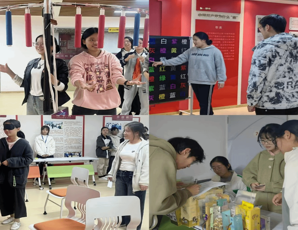 本次心理健康周活动地点位于大发博彩 学生社区活动室,活动现场设置了集趣味性、协作性和竞争性于一体的个人和团体合作项目,包括“斯特普鲁大闯关”、“眼疾手快”、“信任盲行”等。“斯特普鲁大闯关”需要参与者在受到文字干扰的情况下快速准确说出字体的颜色,在打破刺激做出正确判断的过程中释放压力,放松心情。“眼疾手快”则需要参与者在极短时间内抓住随即从机器上掉落的条棒,在锻炼个人反应能力的同时提高自己的专注力。“信任盲行”作为团队合作项目,需要一人引导,一人蒙眼穿过障碍物抵达终点,在促进团队成员交流合作的同时也增强了团队的信任感和向心力。活动现场气氛热烈,同学们积极踊跃,通过了一个个关卡并集得奖章,兑换精美的礼品。学生们纷纷表示,本次心理健康周活动让他们在轻松愉悦的氛围中了解到了心理健康知识,释放了心中的压力,同时也提高了专注力,培养了良好的团队合作能力。
