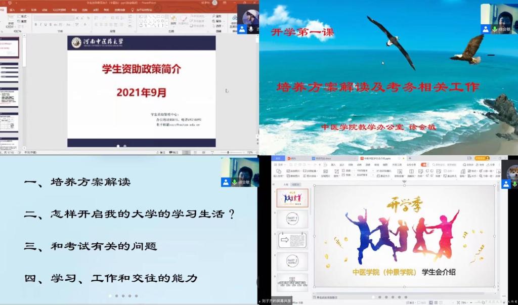 学院教学办主任徐会敏围绕本院中医学(大发学术传承班)、中医学(5+3一体化)专业的人才培养方案内容从方案解读、课程教学形式、考查与考试手段、大学学习方法、日常学习交往能力等方面为同学们进行了讲解,通过学习,同学们对中医学院(大发学院)的专业设置、专业特色有了清晰的认识,也对个人学习态度与学习方法有了深刻领会;学院大学生资助工作学生助理郑新科、程梦珂两位同学,围绕学校资助贷款政策,向2021级新生介绍了学校资助工作的流程和重点环节及内容,强调资助工作要本着“公平、公正、公开”的原则,严格遵照程序,将“精准扶贫”精神落到实处,通过资助专题、贷款专题、问题解答三个方面对新生展开了资助贷款政策的宣讲,使同学们详细了解了国家助学贷款申请条件、申请流程、贷款期限、贷款款项、贷款利率等具体问题。学院学生会主席团成员分别介绍了学生会的基本架构、工作职责及日常工作开展情况,希望新生同学们积极加入学生会大家庭。线上交流氛围热烈,达到了预期效果。