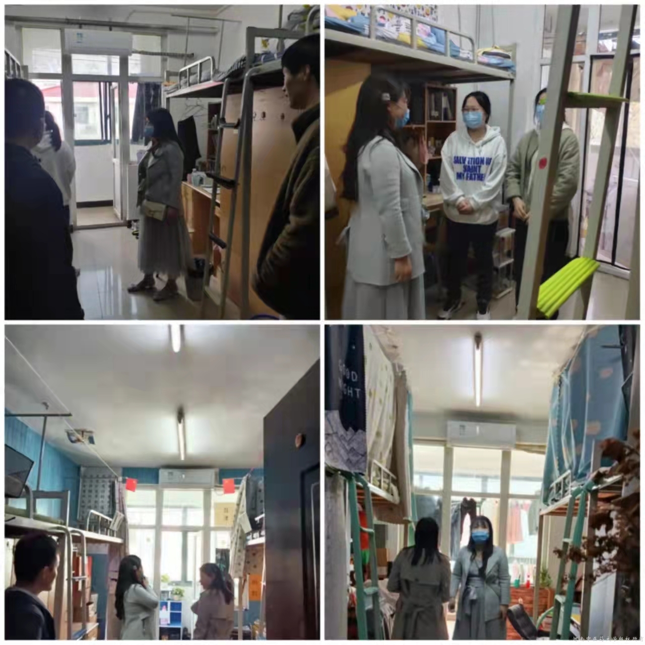 检查期间,老师们每到一个宿舍,主动与同学们交流,关心他们近期的学习、生活、思想动态,叮嘱同学们珍惜在校的学习机会,聚焦毕业论文、科研实验下功夫,勤于导师沟通,汇报进展。希望在校同学严格按照校疫情防控工作要求和实验室管理要求,遵守校园防疫政策。