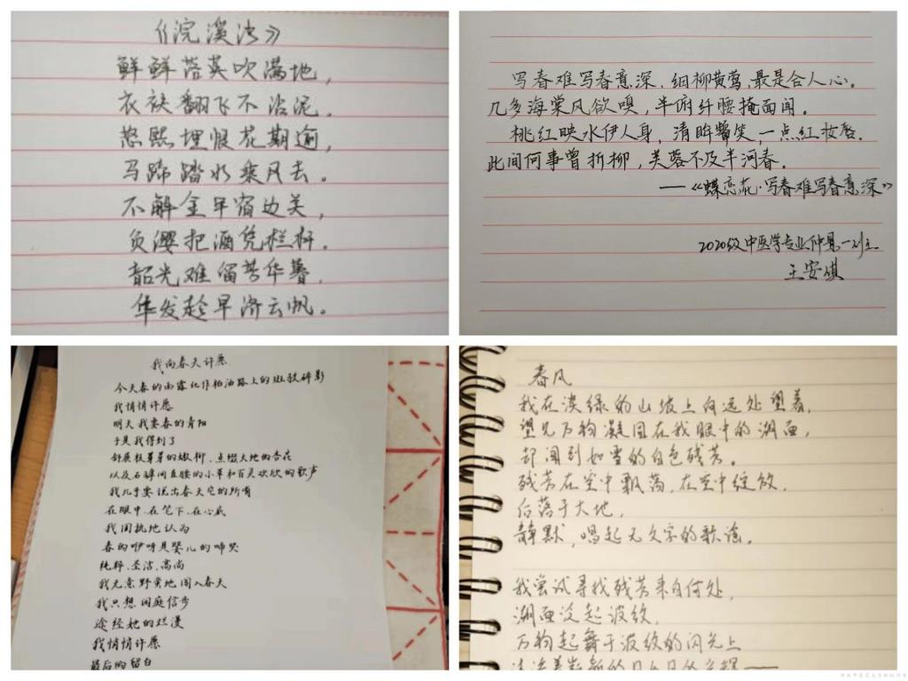 活动期间,同学们积极投稿诗歌作品,寄情于景,多角度、深层次得挖掘素材,用心灵与文笔书写春天校园的美好,用诗歌抒发对学校的热爱之情;校园里的一棵棵桃树,一朵朵迎春花使同学们联想到了“几处早莺争暖树,谁家新燕啄春泥”,在同学们的笔下通过诗言春志,将满园春色描绘得更加生机勃勃。